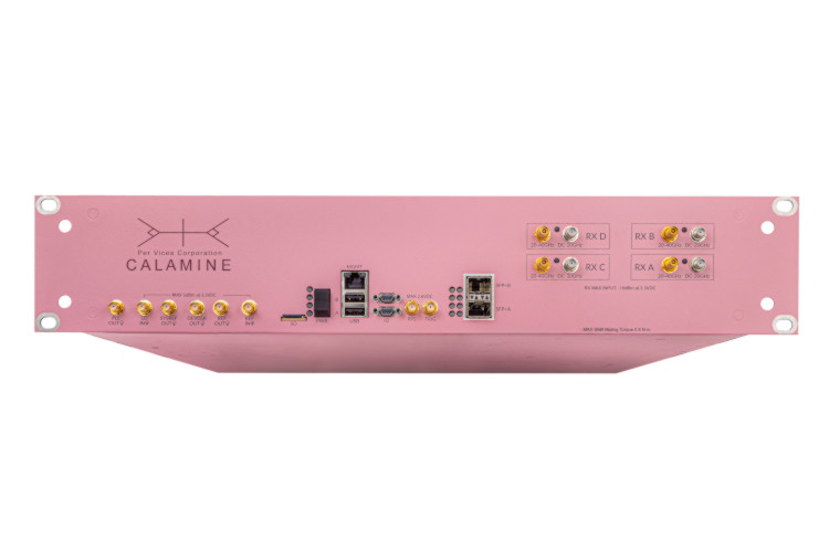 - Connect 10G SFP+ cables from 10GBASE-R network card\(^2\) installed in host computer to SFP+ ports on front of Calamine.