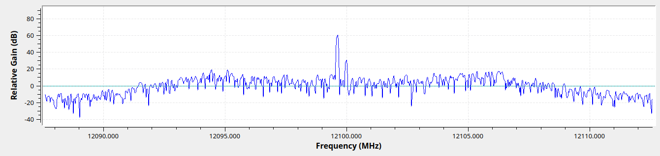Figure 18: Spectrum of 12100 MHz Rx Waveform under Max Sensitivity conditions