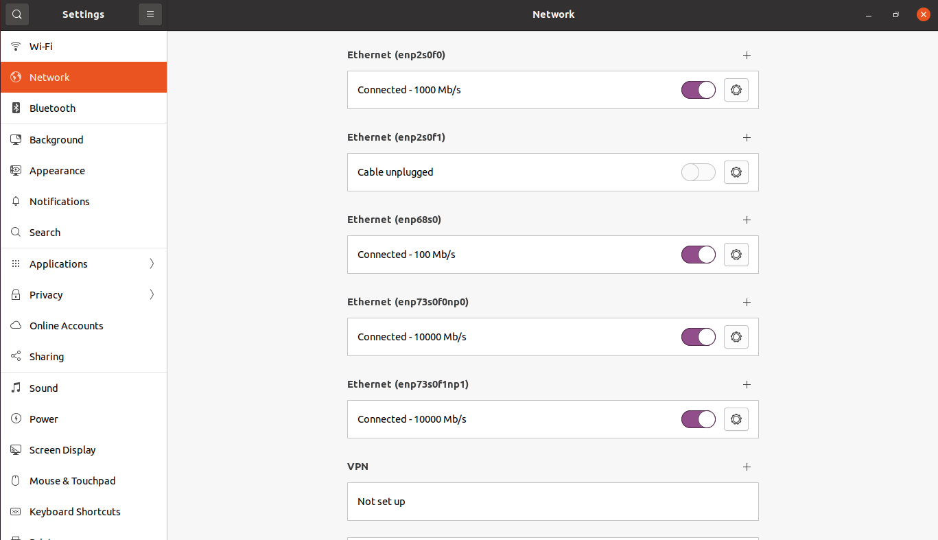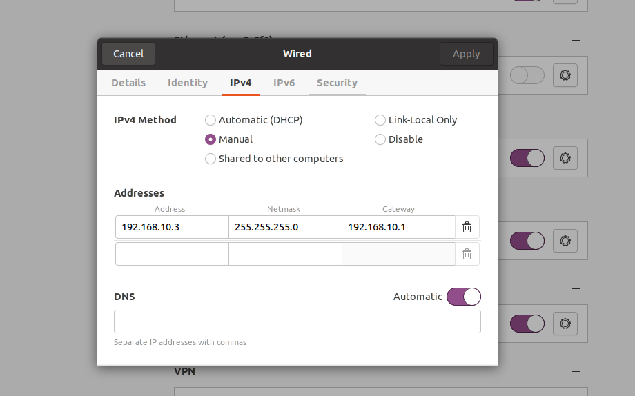 Alternatively, for Ubuntu users, this can also be accomplished with the GUI by going into network settings, as shown in Figure 2 below: