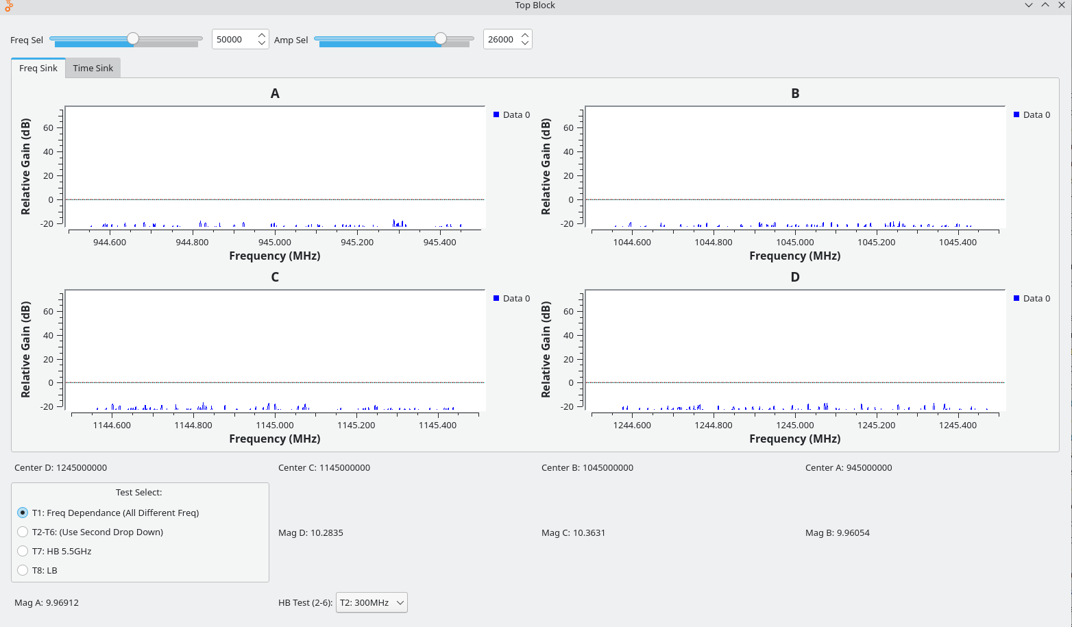 As a final test, download the following GNU Radio Script to ensure the radio chain is working correctly. In order to run this script properly you will need to set up the unit for a loop back operation; instructions to do this can be found here building your first waterfall plot.