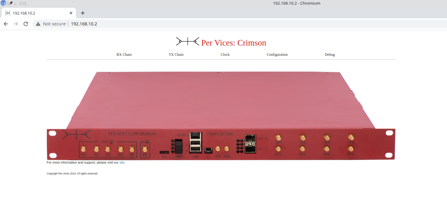 The default IP address of the Crimson TNG MGMT and Cyan MGMT A port is shown below and needs to be written in the address bar of a browser: