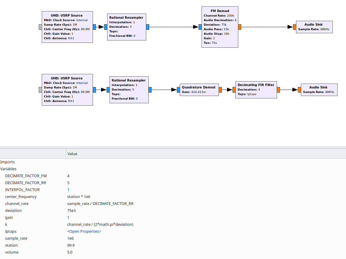 The previous tutorial describes a typical workflow for using a Per Vices radio with gnuradio and provides an overview of how FM Broadcast Receivers work. Today we will write a Linux commandline program to use your Per Vices radio as a FM broadcast receiver in C++ without gnuradio-companion. Our program will resemble the program from the previous tutorial and will use the gnuradio C++ library.
