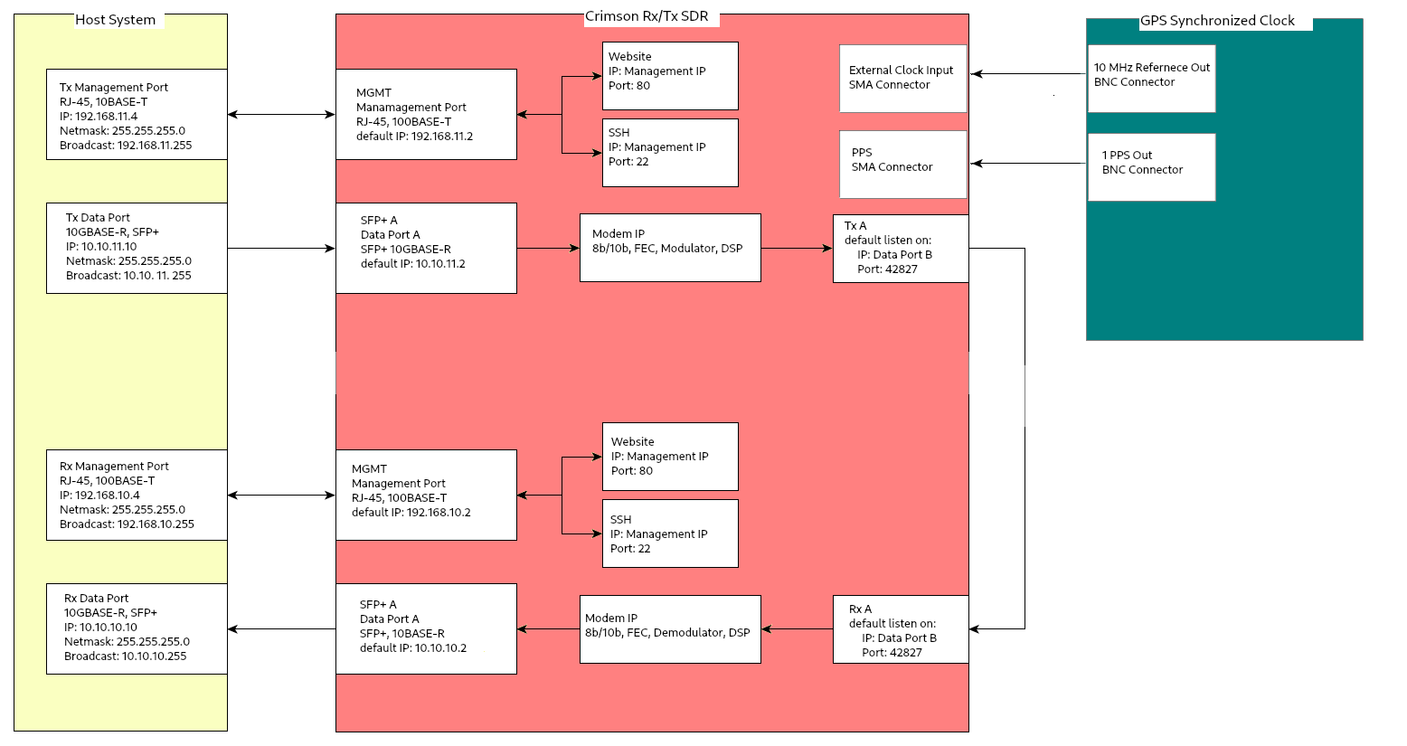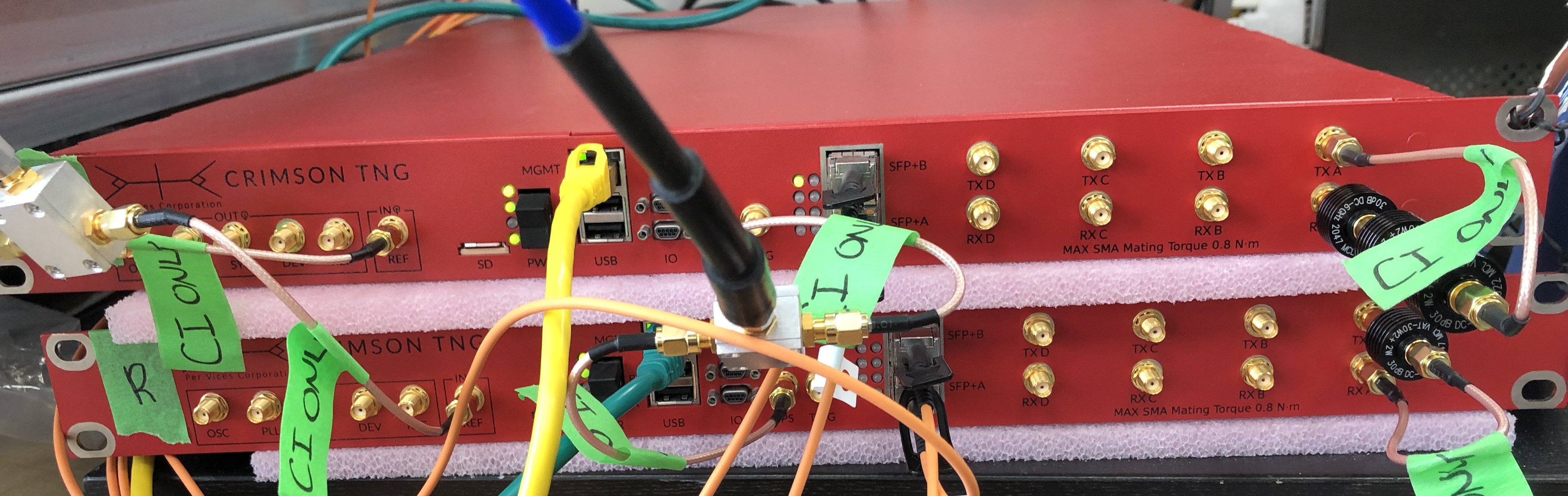 We will demonstrate a QPSK modem on two Crimson TNG units using custom firmware and software. The first part of the demonstration is done on one Crimson TNG in loopback, from Tx A to Rx A, and on one host system. The second part demonstrates the use of Crimson as a point-to-point RF link. UDP payloads are sent to a specified end point from the Crimson Tx host machine, and transmitted by the Tx SDR over an SMA cable, received by the Rx SDR unit, decoded, and sent to the Crimson Rx host machine via another UDP payload.