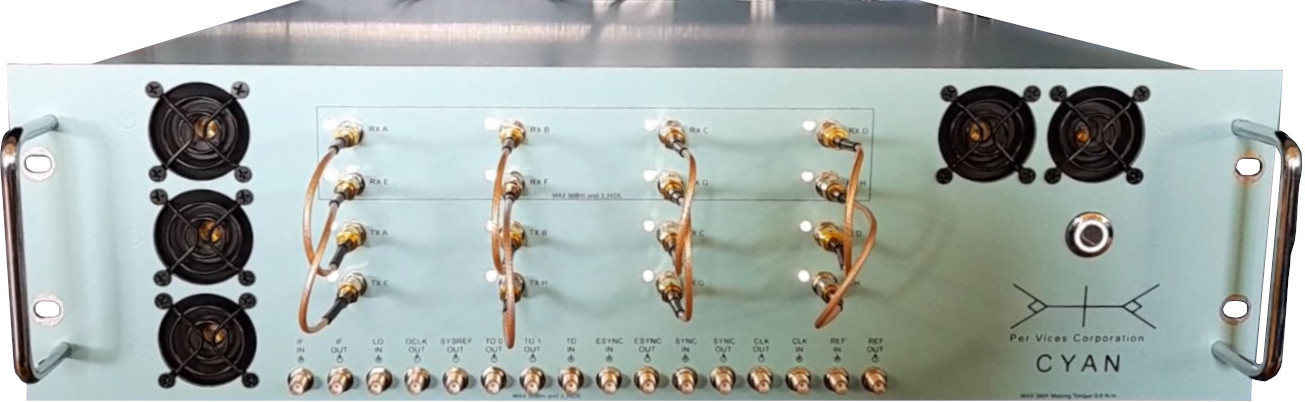 In this tutorial, we demonstrate a loopback test using an 8 receive and 8 transmit configuration of Cyan and a GNU Radio script. This test is used to ensure the SDR is capable of transmitting and receiving the same frequency and amplitude on all eight channels.