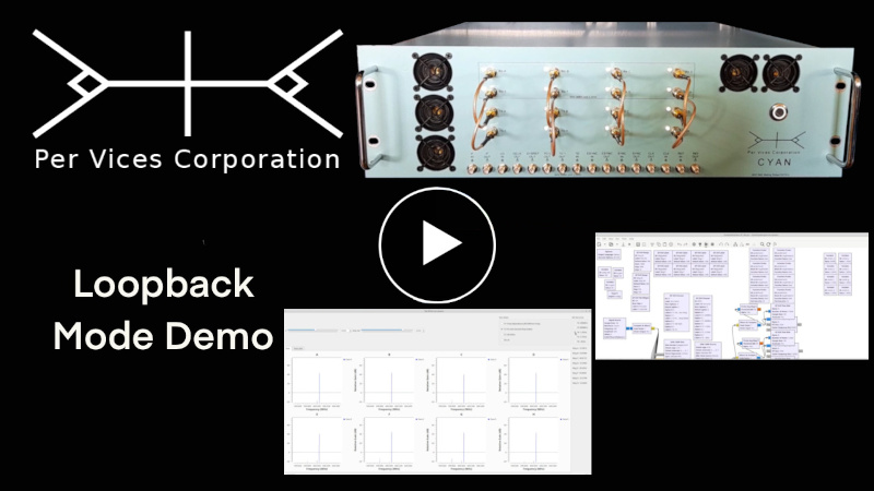 In this tutorial, we demonstrate a loopback test using an 8 receive and 8 transmit configuration of Cyan and a GNU Radio script. This test is used to ensure the SDR is capable of transmitting and receiving the same frequency and amplitude on all eight channels.